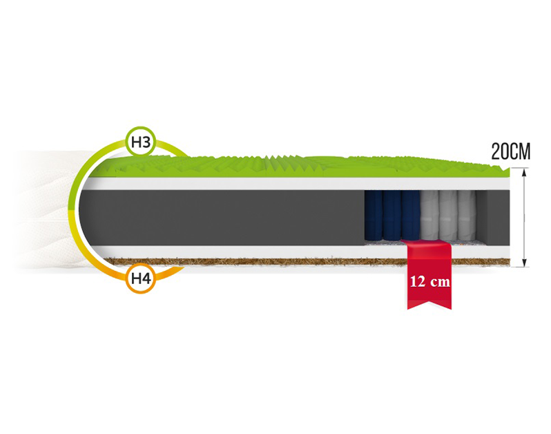 Čiužinys Atmosfera tai 7 zonų kišenines spyruokles turintis čiužinys. H3 (vidutinio kietumo) viršus ir H4 (kietas) apačia. Tai vienas iš mūsų geriausių turimų čiužinių kurio kokybė ir kainos santykis tiesiog stebina. Šis čiužinys yra pagamintas taikant aukščiausius gamybos standartus. Kokoso pluoštas 100% organinė medžiaga kuri puikiai apsaugo nuo organinių organizmų atsiradimo, erkučių bei drėgmės. Puikiai tinka žmonėms kurie turi nugaros skausmus, prakaituoja miego metu labiau nei įprastai ar yra alergiški. Puikiai tinka miego partneriams kurie turi didelį svorių skirtumą dėl 7 zonų technologijos.