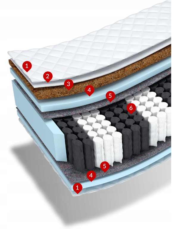 Kokoso pluoštas – 100% organinė žaliava, gauta iš kokoso kevalų. Kokoso pluoštai yra lengvi ir laidūs orui, tačiau kartu labai patvarūs ir lankstūs, atsparūs drėgmei ir deformacijai. Jie pagerina oro cirkuliaciją čiužinio viduje, taip užkertant kelią per dideliam prakaitavimui. Kokosas taip pat pasižymi antialerginėmis savybėmis ir neleidžia daugintis grybeliui bei dulkių erkutėms.