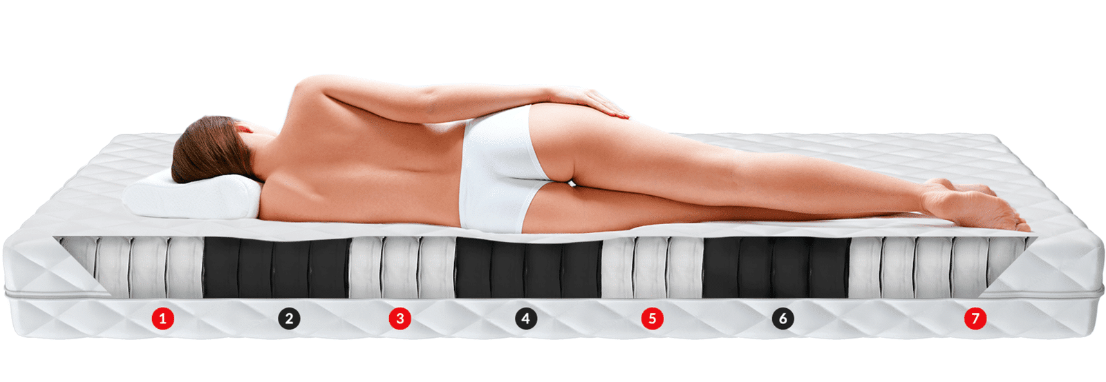7 zonų kišeninės spyruoklės – Spyruokliniai čiužiniai padalijami į 7 zonas, kurių kiekviena turi atitinkamą atramą tam tikrai kūno daliai. Spyruoklės veikia nepriklausomai vienas nuo kito, todėl du šalia vienas kito miegantys žmonės nejaučia diskomforto dėl kito asmens judėjimo. Čiužinys taip pat puikiai tinka žmonėms, turintiems skirtingus kūno svorius, nes čiužinys neįlinksta kito žmogaus miegamoje pusėje.