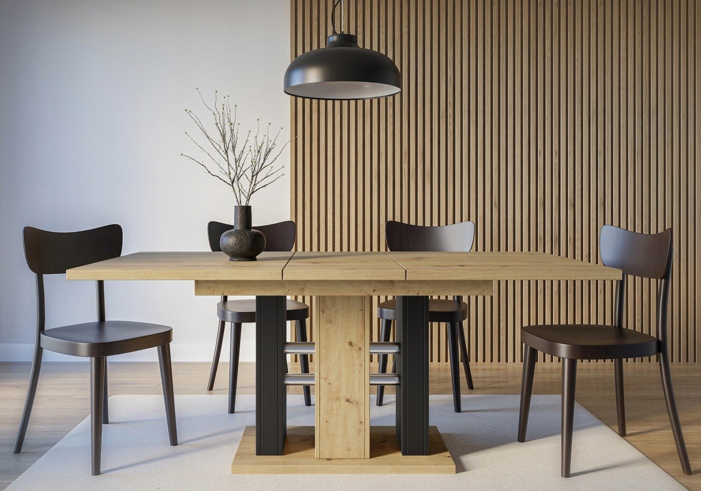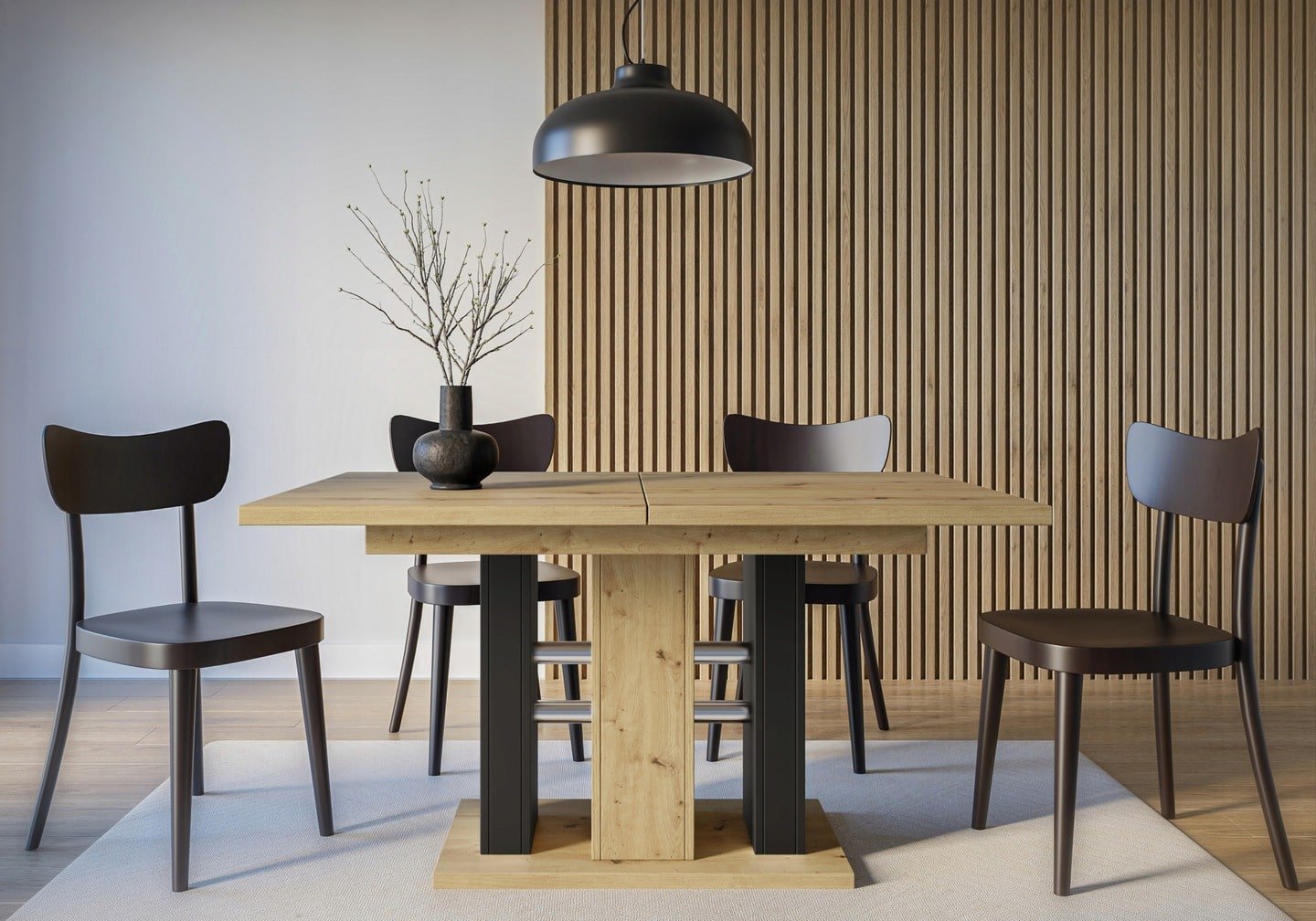 Stalas transformeris ŠALTIS pasižymi originaliu dizainu, kurio dėka į savo namų erdvę įnešite modernumo dvelksmo. Pastorintas stalviršis pagamintas iš 36 mm laminuotos plokštės, – turi išskleidimo funkciją, nepakeičiamą didesnių susitikimų metu. Stalą transformerį labai lengva prižiūrėti ir valyti. Valymui tinka, bet kuri neagresyvi priežiūros priemonė skirta laminuotai plokštei.